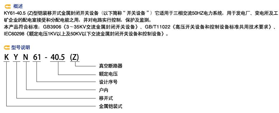 KY61-40.5(Z)型铠装移开式交流金属封闭开关设备
